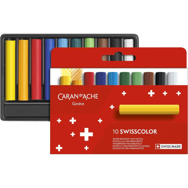 Pastels à la cire permanents - boîte carton - 10 pastels - Swisscolor